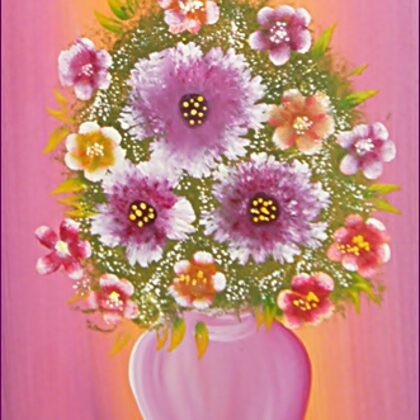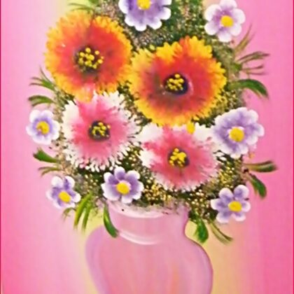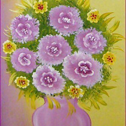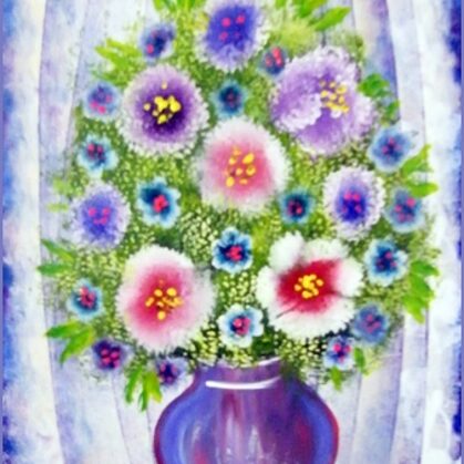 Igazgató néni a tanulókkal. Közös munka volt ez a csendélet. -