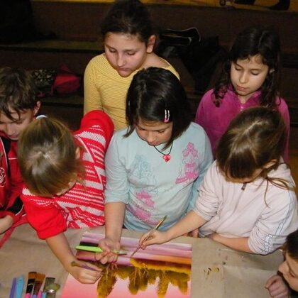 A technika bemutatása után hagyjuk, hogy a gyerekek elkészítsék saját festményüket