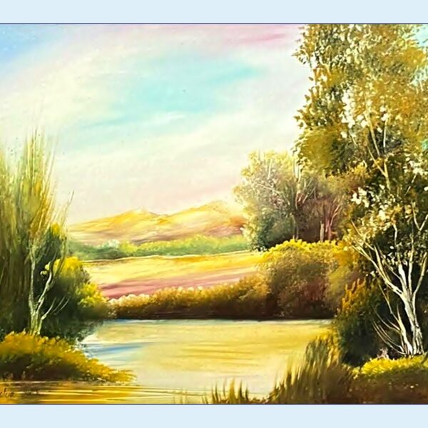 Virágzó fa a tóparton 20x30cm